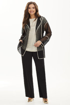 Брюки средней посадки. В пояс вставлена резинка с регулируемым шнурком. В боковых швах карманы.