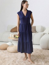 Ярусное платье А силуэта с V вырезом из 100% премиального хлопка