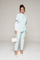 Ищешь стильный и универсальный костюм на любой случай? Женский брючный костюм из лёгкой ткани – превосходное решение для летнего гардероба! В костюм входят брюки на резинке с карманами-хулиганами и рубашка с длинным рукавом и застежкой на петли и пуговицы. На рубашке обработаны нагрудные накладные карманы с клапаном. Рукав на манжете. Оба изделия можно носить как самостоятельные и вписывать их в абсолютно любой образ, будь то деловой, офисный, повседневный городской, спортивный, пляжный или вечерний. Костюм сшит из невесомого материала, в состав которого входят хлопок и лен. Свободный, прямой крой хорошо садится на любой рост и тип фигуры, худых и полных, высоких и невысоких женщин и девушек. Модель оверсайз позволит чувствовать себя комфортно и удобно. Эта необычная однотонная двойка без принта не выйдет из моды и будет актуальна во все времена, подойдёт на все случаи жизни. В наличии ультрамодные и классические расцветки. Жакет и брюки состоят из натуральной и легкой ткани, которая позволит Вашей коже дышать в жаркие дни. Большие размеры и свободный крой обеспечат максимальный комфорт и свободу движений.