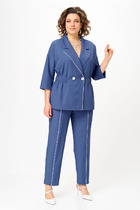 Элегантный женский костюм, в котором классика встречается с современными акцентами. Жакет выполнен в двубортном исполнении с выразительным пиджачным воротником, подчеркивающим строгость и стиль. Рельефы на полочках от плечевого шва придают силуэту структурность, а прорезные карманы в листочку добавляют практичности и утонченности. Особое внимание привлекает спинка: асимметричный рельеф на правой части, переходящий в шлицу, оформленную декоративными пуговицами — неожиданный и эффектный штрих. Втачные двухшовные рукава завершены аккуратными шлицами с тремя пуговицами, что добавляет костюму благородства и внимания к деталям. Брюки — лаконичные, с функциональными карманами и гульфиком на молнии. Удобный пояс с эластичной тесьмой по бокам делает посадку комфортной, не нарушая внешней строгости образа. Этот костюм — идеальное сочетание женственности, силы и комфорта. Он подойдет как для деловой встречи, так и для повседневного выхода, где важна уверенность и стиль.