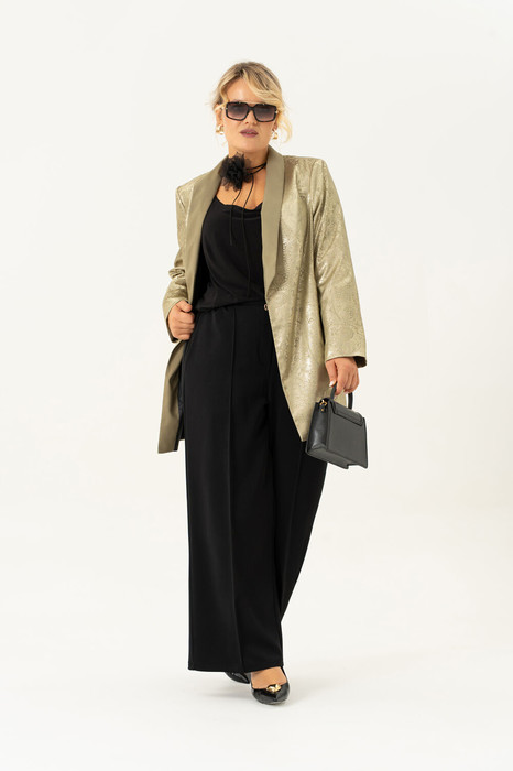 Этот комплект одежды идеально подходит для женщин, которые хотят выглядеть стильно и элегантно на любом мероприятии. Идеальный вечерний наряд, который придаст особый шик Вашему образу. Комплект состоит из брюк , блузы и жакета, и образует абсолютно классическую тройку. Неважно, это деловое собрание или праздничное мероприятие - этот брючный комплект подойдет для любого случая. Базовая модель прекрасно подчеркнет вашу фигуру и придаст вам очаровательный вид. Комплект выполнен из качественной ткани и дополнен жакетом с застежкой на декоративный крючок , которые делают его еще более привлекательным и уникальным. На жакете обработан воротник шалька и карманы в фигурных рельефах. Жакет на подкладке с длинным рукавом. Блуза без рукова из стрейчевой ткани с нагрудными выточками. Брюки-палаццо на эластичной резинке с эмитацией гульфика. По переду расположены карманы с наклонным входом. Нарядный вечерний комплект создаст модный образ на свадьбу, или на вечеринку, а так же подчеркнет Ваш стиль . Брючный комплект женский больших размеров отличается высокой степенью практичности и универсальности,приобретая один комплект- Вы получаете много образов, комплектуя элементы комплекта с другими вещами из своего гардероба!