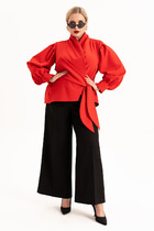 Элегантный женский костюм из ткани «марчано» стильный и универсальный наряд для различных мероприятий. Модель "двойка" сочетает в себе современные тенденции 2025-26 года с классическими акцентами. Подходит как для офиса, так и для особых случаев ( новый год, корпоративы, свадьбы или дни рождения) обеспечивая комфорт и уверенность в себе. Брюки с широкими штанинами палаццо выгодно подчеркивают женственные формы, а свободный крой обеспечивает удобство в любой ситуации. Этот костюм больших размеров идеально подойдет для прохладного времени года благодаря легкому материалу и возможности сохранить тепло. Текстура ткани добавляет изысканности и роскоши, делая образ особенно привлекательным на особых событиях. Благодаря универсальному дизайну, костюм можно успешно сочетать с различными элементами гардероба, создавая разнообразные стили от официального до повседневного. На брюках обработаны карманы в боковых швах, по талии пояс с застежкой на молнию и частично на резинке. Жакет с отрезной баской и воротником стойкой переходящей в борта. Застежка на потайную петлю и пуговицу и на завязки. Рукав длинный, втачной на манжете. По окату рукава обработаны складки. Доступен в различных размерах, в том числе и для женщин пышных форм, этот костюм позволит каждой леди подобрать идеальный вариант. Красный цвет костюма подчеркнут вашу индивидуальность и хороший вкус. Независимо от того, выберите ли вы его для офиса или вечера, этот костюм станет верным спутником в создании вашего стильного образа.