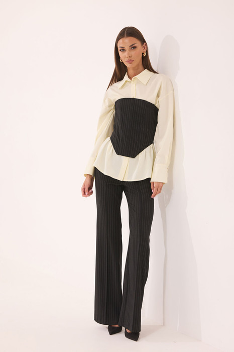 Комплект женский, состоит из топа-корсета и брюк, выполненных из ткани в полоску.