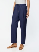 Комплект женский, состоит из блузки, жилета и брюк. Полуприлегающий силуэт, жилет с V-образной формой горловины, на переде рельефы от проймы, имитация карманов в рамку, по спинке хлястик с пуговицей. Блузка с рубашечным воротником и застежкой на петли и пуговицы, нагрудные вытачки, рукав одношовный с манжетой. Разрезы в боковых швах. Брюки прямые, с карманами. Пояс по спинке на резинке. На переде и спинке заутюжены стрелки.