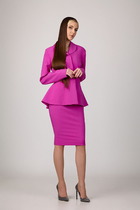 Стильный лаконичный брючный костюм. Жакет с застежкой на одну пуговицу. Жакет полуприлегающего силуэта, с V-образным вырезом горловины. По переду и по спинки имеются вытачки и рельефы, которые обеспечивают отличную посадку изделия по фигуре. Рукава втачные, длиной 3/4. Брюки классические на поясе, укороченые, с карманами по переду. Отличный вариант как для деловых встреч, так и для торжественных мероприятий.