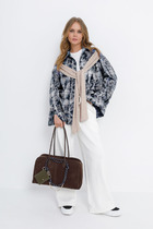 Детали: жакет полуприлегающего силуэта, рельефы, пиджачный воротник, застежка на две петли и пуговицы, функциональные карманы, жакет на подкладке. Жакет также можно зашнуровать по бокам. Брюки на притачном поясе со шлевками, застежка на молнию и пуговицу, боковые карманы, передние половины заутюженными стрелками. Задние части брюк с вытачками, стрелками и имитацией карманов. Низ брюк с широкой подгибкой, при помощи подгибки можно регулировать длину, подвернув её.