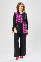 Длина жакета по спинке около 69 см в размерах 40-46 и около 71,5 см в размерах 48-52, длина рукава около 61,5 см. Длина брюк по боковому шву с поясом около 99 см в размерах 40-46 и около 100,5 см в размерах 48-52, длина по внутреннему шву около 69,5 см.