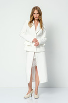 Длина жакета по спинке около 69 см в размерах 40-46 и около 72 см в размерах 48-52, длина рукавов около 62 см. Длина топа по спинке около 27,5 см в размерах 40-46 и около 29 см в размерах 48-52. Длина брюк по боковому шву с поясом около 113 см в размерах 40-46 и около 114,5 см в размерах 48-52, длина по внутреннему шву около 82 см
