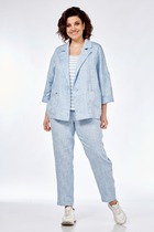 Длина жакета по спинке около 68,5 в размерах 40-46 и около 71,5 см в размерах 48-52, длина рукавов около 63 см. Длина брюк по боковому шву с поясом около 114 см в размерах 40-46 и около 115,5 см в размерах 48-52. Длина по внутреннему шву около 83 см