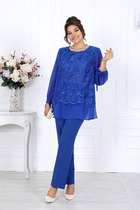 Детали: рубашка прямого силуэта, спущенная линия плеча, застежка на петли и пуговицы, длинные рукава с притачными манжетами, фигурный низ. Брюки с высокой посадкой на притачном эластичном поясе, без застежки, боковые карманы Брюки на подкладке из основной ткани.