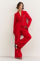 Детали: блуза прямого силуэта, застежка на петли и пуговицы, рукава втачные длинные с высокой подгибкой, съемный пояс, без подкладки. Брюки на притачном поясе, складки у пояса, застежка на молнию и пуговицу, боковые карманы, пояс без резинок, брюки на подкладке 100% вискоза.
