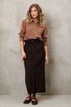 Джинсовая юбка миди А силуэта с декоративными швами из эластичного денима