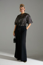 Костюм-двойка из оверсайз жакета и мини-юбки из костюмной ткани с пайетками.