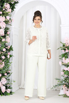 Брюки длинные, широкие. По задним половинкам талиевые вытачки. По передним половинкам односторонние складки, боковые карманы и застежка на тесьму-«молнию» с гульфиком и откоском. Брюки на притачном поясе, по спинке с резинкой.