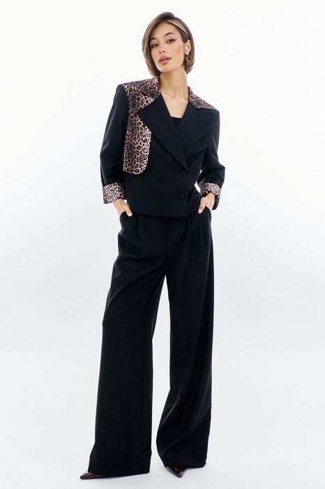 -отлетная кокетка, воротник и обтачка рукава с леопардовым принтом