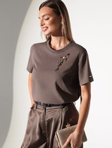 Нарядная футболка с принтом пайетками из премиального хлопка с эластаном