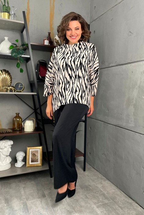 Состав: Блуза- Вискоза-37%; ПЭ-60%; Эластан-3%; Брюки- Вискоза-20%; ПЭ-75%; Спандекс-5%;