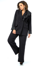 Жакет можно носить нараспашку, дополнив топом или майкой. Брюки с высокой посадкой можно носить отдельно и сочетать с блузками и футболками.
