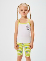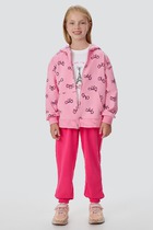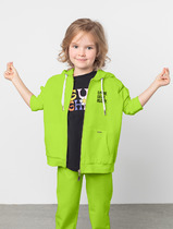 Комплект для девочки из футера, состоящий из 2 изделий: свитшот (джемпер) и леггинсы. Свитшот укороченный прямого силуэта, с длинными рукавами-реглан на манжетах. Круглая горловина оформлена бейкой. На переде принт. Низ свитшота не обработан.