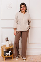 Брюки прилегающие по бедрам и расширенные к низу. В боковых швах обработаны карманы. Застежка молния, по поясу на петлю и пуговицу. По поясу шлевки.