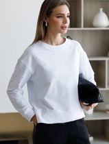Свитшот из эластичного футера с принтом стразами