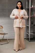 Состав: Джемпер- Вискоза-67%; Спандекс-5%; Нейлон-28%; Брюки- Вискоза-33%; ПЭ-65%; Спандекс-2%;