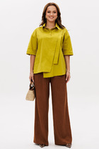 Брюки - из полотна с набивным рисунком, длинные, на притачным поясе с эластичной тесьмой внутри, и карманами в боковых швах. Входы в карманы окантованы основным материалом.