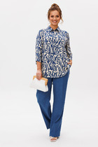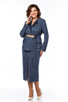 Костюм женский из гладкокрашеного трикотажного полотна футер-двунитка, состоящий из футболки и брюк. Футболка – классического покроя, с короткими втачными рукавами и горловиной овальной формы, обработанной втачной планкой. В нижней части полочки слева настрочен декоративный элемент прямоугольной формы.Брюки – длиной 7/8, слегка зауженные книзу, на притачном поясе с эластичной тесьмой внутри и карманами в боковых швах. Передние половины брюк застрочены по линиям центра вдоль на 0,3 см.