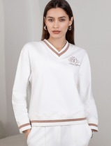 Свитшот среднего объема с V вырезом и принтом из футера двухнитки с эластаном