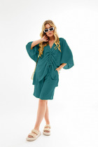 Жакет свободного полуприлегающего силуэта, на подкладке, с двубортной застежкой на 2 петли и 4 металлические пуговицы (размер и цвет фурнитуры может незначительно отличаться от фото). Перед и спинка с отрезным бочком.