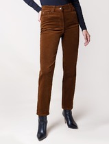 Костюм женский двухпредметный, состоящий из жакета и брюк. Жакет полуприлегающего силуэта, с центральной бортовой застежкой на одну петлю-пуговицу до линии перегиба лацкана. С нагрудной вытачкой, выходящей из бокового шва. На правой части переда обработана отлетная шлица в рельефном шве на 4 петли-пуговицы. Рельеф от плеча и до низа. На левой части переда в верхней части обработан съемный хлястик на 2 петли-пуговицы, имитирующей листочку. Спинка со средним швом. Воротник пиджачного типа. Рукава втачные двухшовные длинные. Жакет на подкладке. Брюки классического кроя, зауженные к низу, с притачным поясом сзади на резинке. Застежка на одну петлю-пуговицу по поясу и тесьму-молнию в средних срезах передних половинок. В изделии обработаны карманы, наклонные к боковому шву. На брюках заютюжены канты.