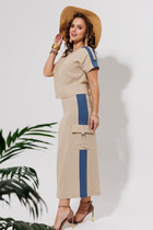 костюм из кулирки с печатью -футболка  горловина с отделкой + шорты