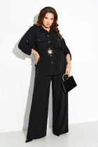 Жакет полуприлегающего силуэта с естественной линией плеча. Спинка со средним швом и рельефами из плеча. Перед с рельефами из плеча и прорезными карманами. Застежка центрально-бортовая на петлю-пуговицу. Горловина углубленная авторской формы. Рукав втачной длинный. В локтевом шве рукава обработана отлетная шлица с отделочными пуговицами.
