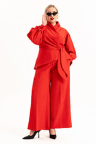 Блуза свободного покроя со спущенной линией плеча. Центральная бортовая застёжка с планкой на петли-пуговицы Рукав втачной одношовный. Низ рукава с манжетой из полотна с пайетками и складками. Спинка с кокеткой и встречной складкой. Воротник на отрезной стойке блузочного типа. По переду настрочены декоративные клапаны из полотна с пайетками.