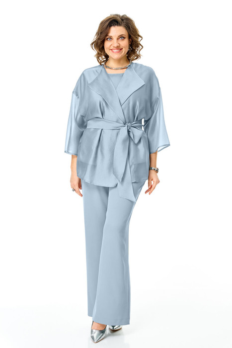 Блуза из премиальной ткани "Искринка" типа вуаль, свободного покроя со спущенной линией плеча. Воротник типа "апаш". Спинка со средним швом. Рукав длиной 3/4. Имеется навесной пояс.