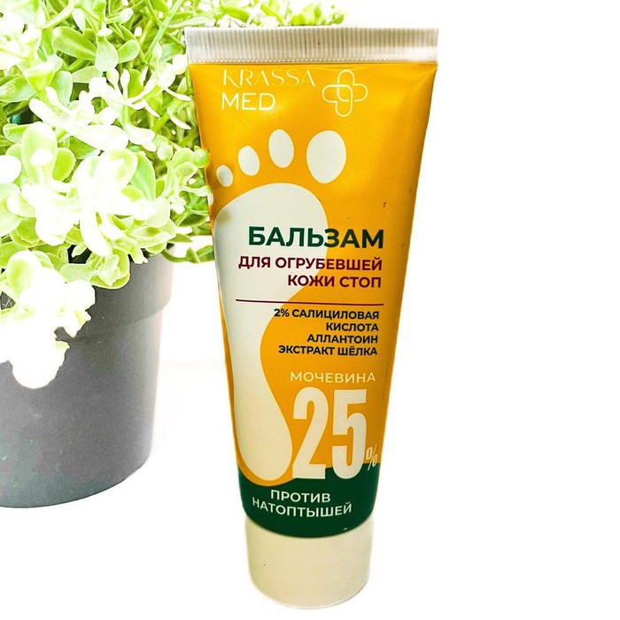 Бальзам для огрубевшей кожи стоп с высоким содержанием Мочевины для размягчения мозолей и натоптышей. Обладает эффективными увлажняющими, смягчающими свойствами. Отшелушивает и питает сухую потрескавшуюся кожу, помогая избавиться от натоптышей, трещин и мозолей.