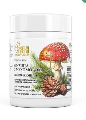 Хвойная живица обладает мощным противовоспалительным и обезболивающим действием, а мухомор оказывает антисептическое воздействие. Состав мази издревле применяется в народном целительстве для облегчения болей в суставах, мышцах и позвоночнике, при артрите, артрозе, остеохондрозе и ревматизме, может помочь при невралгии, ушибах и растяжениях, при кожных проблемах, включая экзему, псориаз, грибковые поражения, способствует заживлению ран, порезов, стимулирует кровообращение, способствует снятию отечности и усталости ног, предотвращает мышечные спазмы и судороги.