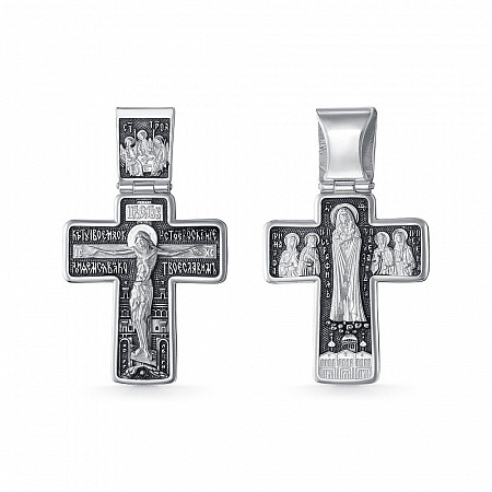 Крест (БМ Умиление с Дивеевскими святыми) из серебра литье частичное чернение