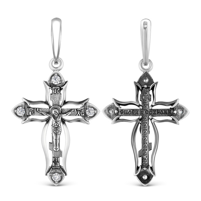Совместные покупки Пермь Ювелирные украшения и бижутерия Подвески — Крест из чернёного серебра с фианитами - 4,3 см 925 пробы 40-349ч200