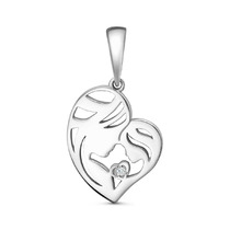 Подвеска сердце из серебра с фианитом родированная - Мать и дитя 925 пробы 13-03
