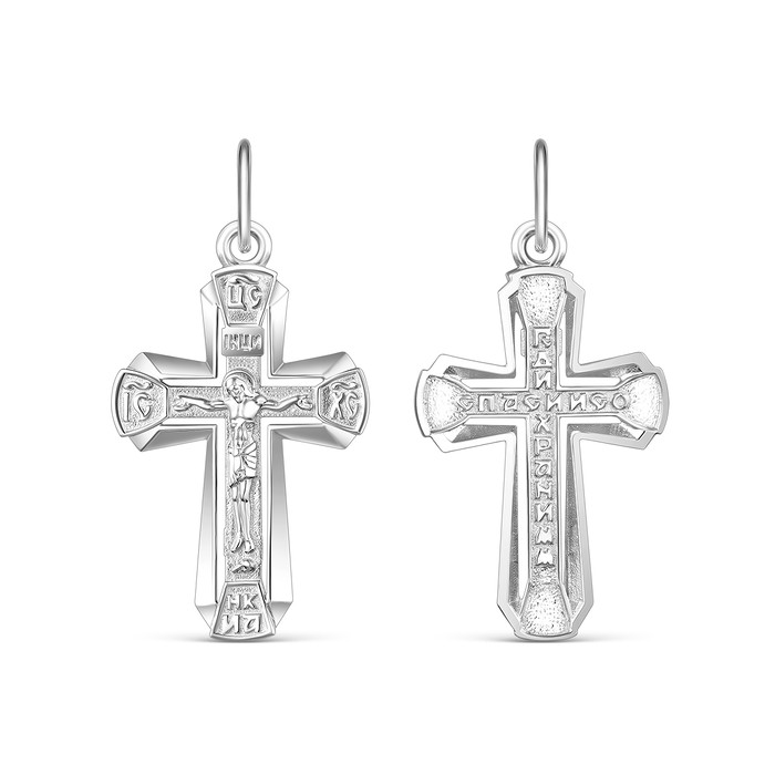 Совместные покупки Пермь Ювелирные украшения и бижутерия Подвески — Крест из серебра родированный - Спаси и сохрани 3,4 см 925 пробы К3-593р
