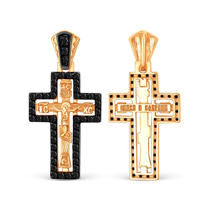 Совместные покупки Пермь Ювелирные украшения и бижутерия Подвески — Крест из золочёного серебра с фианитами и родированием - 2,9 см