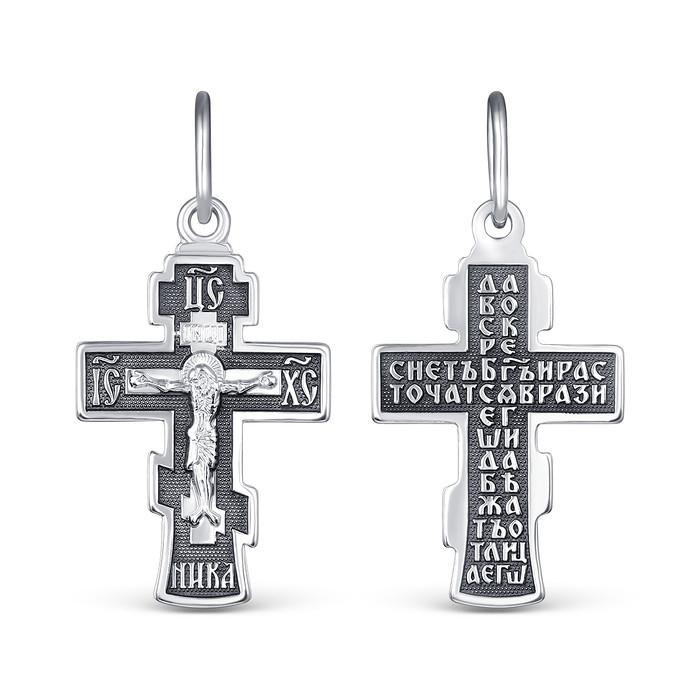 Совместные покупки Пермь Ювелирные украшения и бижутерия Подвески — Крест православный из чернёного серебра - Да воскреснет бог 2,9 см 925 пробы 1-2