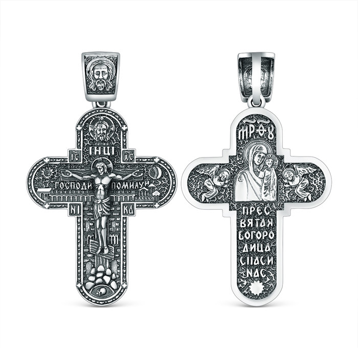 Совместные покупки Пермь Ювелирные украшения и бижутерия Подвески — Крест православный из чернёного серебра - Пресвятая Богородица, спаси нас 3,9 см