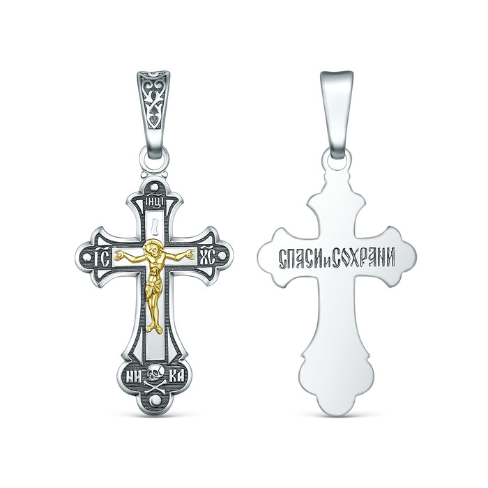 Совместные покупки Пермь Ювелирные украшения и бижутерия Подвески — Крест православный из чернёного серебра с золочением - Спаси и сохрани, 3,4 см 0