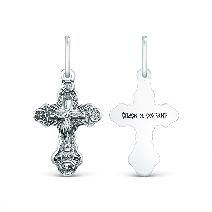 Совместные покупки Пермь Ювелирные украшения и бижутерия Подвески — Крест православный из чернёного серебра - Спаси и сохрани 2,4 см 925 пробы 00-00