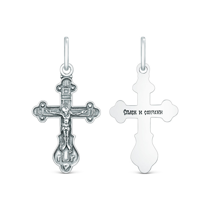 Совместные покупки Пермь Ювелирные украшения и бижутерия Подвески — Крест православный из чернёного серебра - Спаси и сохрани 2,8 см 925 пробы 00-00