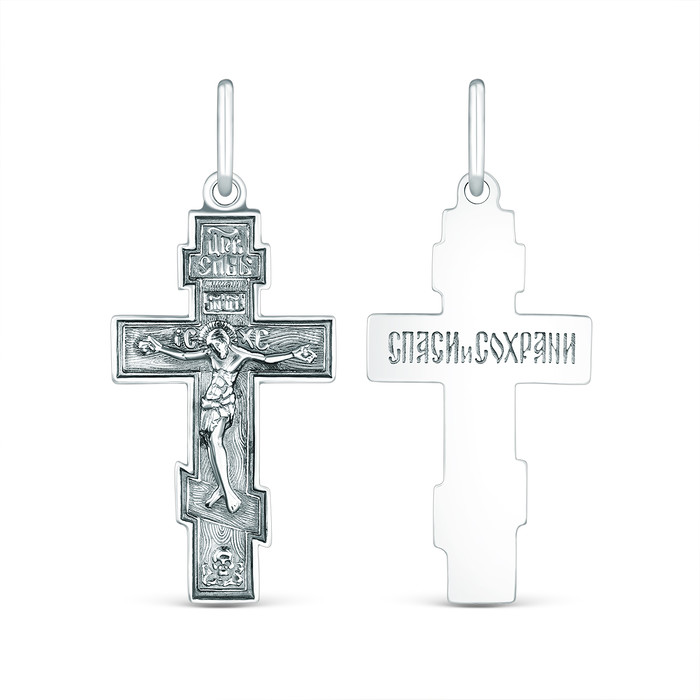 Совместные покупки Пермь Ювелирные украшения и бижутерия Подвески — Крест православный из чернёного серебра - Спаси и сохрани 3,2 см 925 пробы 00-00