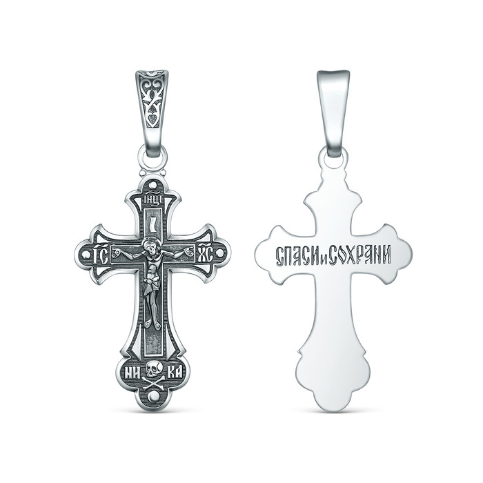 Совместные покупки Пермь Ювелирные украшения и бижутерия Подвески — Крест православный из чернёного серебра - Спаси и сохрани, 3,4 см 925 пробы 00-0