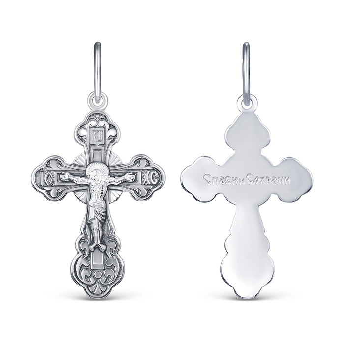 Совместные покупки Пермь Ювелирные украшения и бижутерия Подвески — Крест православный из чернёного серебра - Спаси и сохрани 3,7 см 925 пробы 1-053